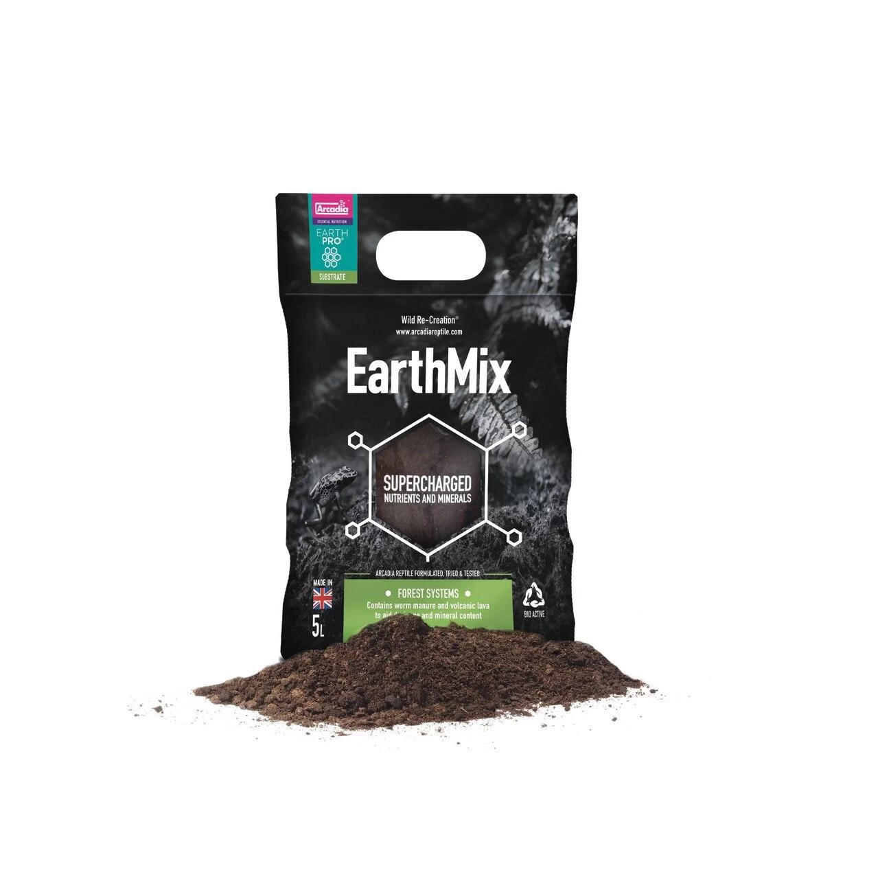 Arcadia Reptile ‘EarthMix’ has been designed by experts to be the ultimate choice in safe and effective ‘Bio-Active’ vivarium and terrarium substrate. EarthMix is a clean, safe to use, mineral rich Bio-Active ready substrate which, unlike other substrate available on the market, have no non-natural particulates that could lead to impaction. Having the correct mix ‘ratios’ between ‘Mineral’ and ‘Organics’ helps to support the vital custodian species used in Bio-Active systems. Arcadia Reptile EarthPro-EarthMix is full of ‘Organic Goodness’ and can be thought of as being ‘pre-fed’. This means that custodians can be added in from day one and will start to thrive. If you want to further support your custodians, you can