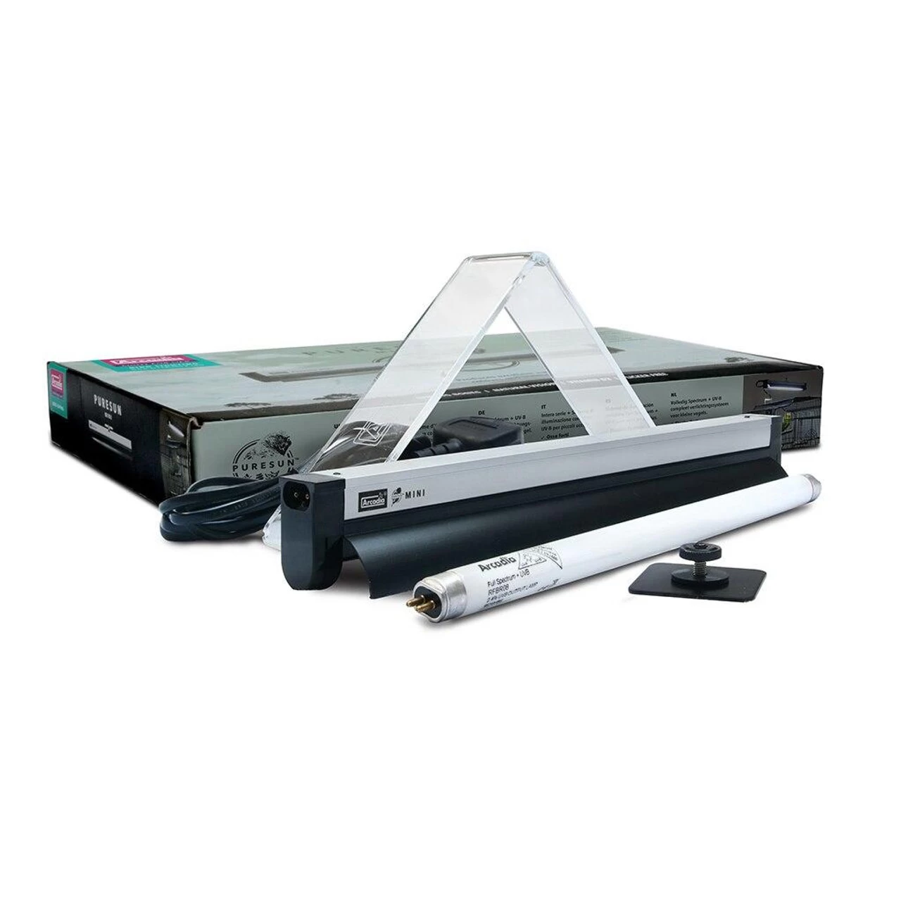The Arcadia Bird ‘PureSun-Mini’ complete lighting system is an easy to use, modern and attractive Full-Spectrum + UV-B lighting kit.