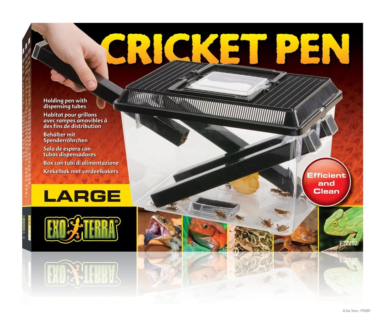 The Exo Terra Cricket Pen is ideal for housing, keeping and dispensing live crickets. Crickets prefer dark spaces, and will readily crawl into the tubes which provide hiding places for them, making it easy to use the tubes as dispensing tools.