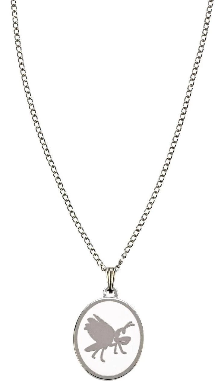 Fashionable nickel-free necklace (82 cm) with copper stamped pendant. The pendant is crafted in white synthetic enamel with a shiny finish. Delivery on jewellery cards.