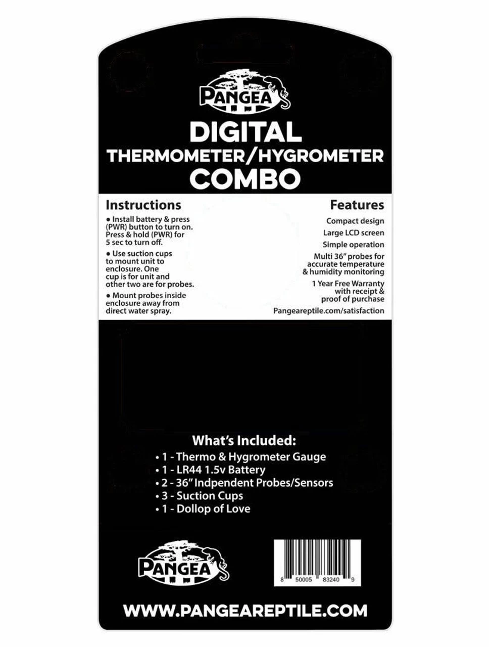 The Pangea Temp & Humidity Gauge is a small yet very accurate and reliable measuring device. Many animals require a consistent temperature and humidity to thrive. This device provides readings for both and is a must have for any serious reptile keeper.