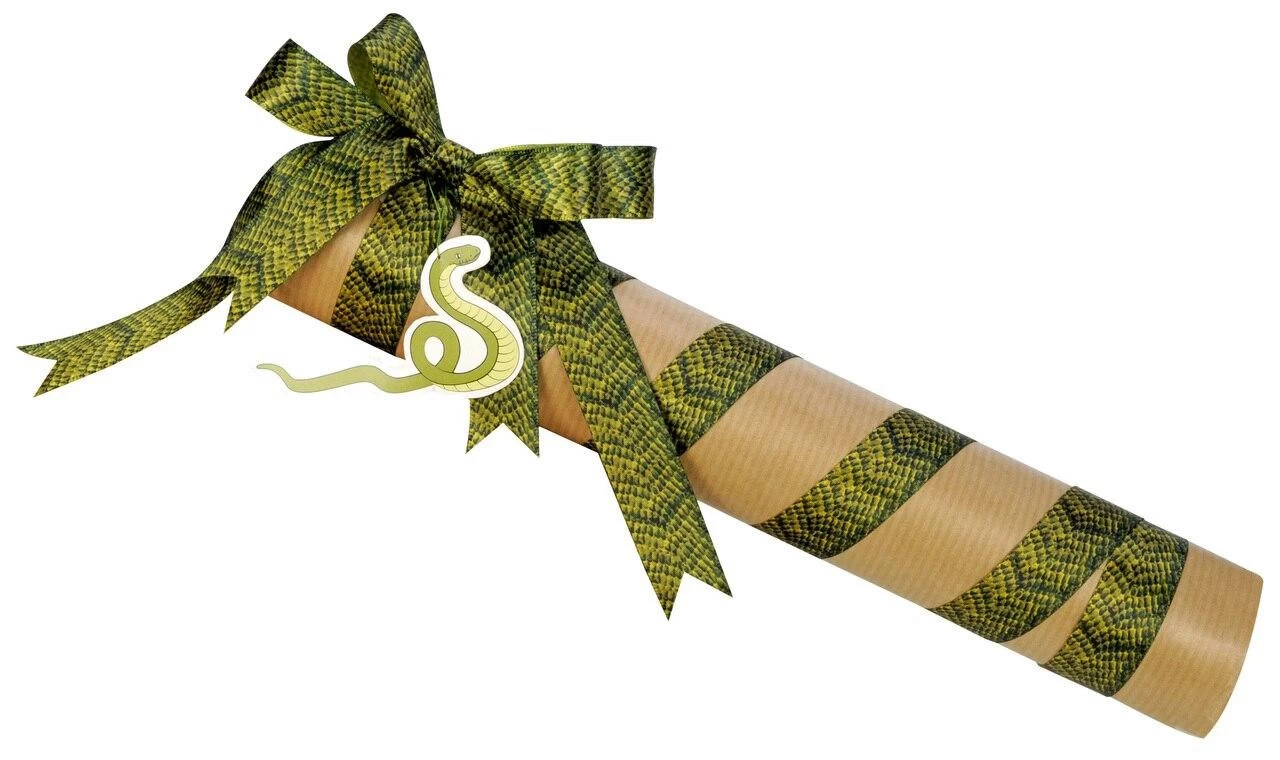 Watch out! Don`t mistake this 20 mm wide, shimmering ribbon for a real snakeskin. It makes every gift unique. 2.5 m satin ribbon are wrapped around each packing card. You can cut the packing card with scissors into a cute gift tag.