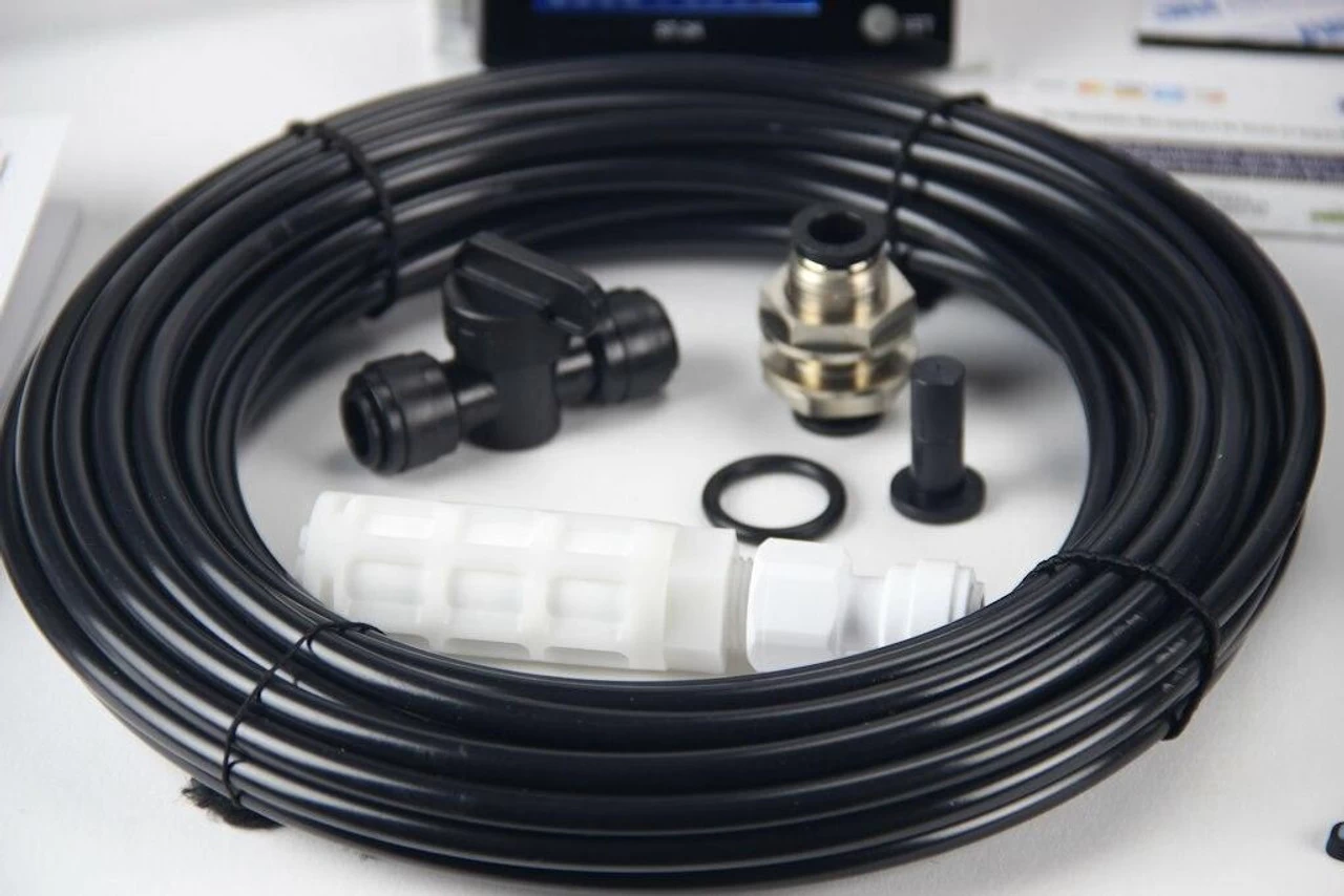 This Advanced Misting System v5.0 includes Advanced Misting System with a 3/8″ Backbone is a significantly more powerful system than the starter or ultimate. Unless you’re going to exceed 15-20 nozzles, we do not recommend upgrading to this misting system. Features a pump capable of pressures up to 125psi. Supports from 10 to 70+ nozzles of your choice. Actual number of nozzles depends on the complexity of the system. Pump can run continuously for hours at a time, EVEN DRY! These pumps are manufactured specifically for MistKing and are very robust.