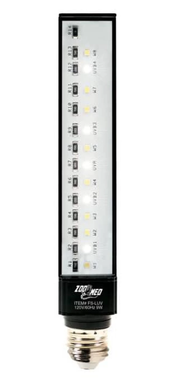 UVA is part of reptile vision, so without it they’re colorblind! A portion of UVA wavelengths (from 320nm-335nm) also help regulate Vitamin D3 production and let reptile’s body’s know when they’ve created enough. The Reptisun® UVB/LED bulb emits UVA wavelengths from 320nm-335nm and from 355nm-395nm.